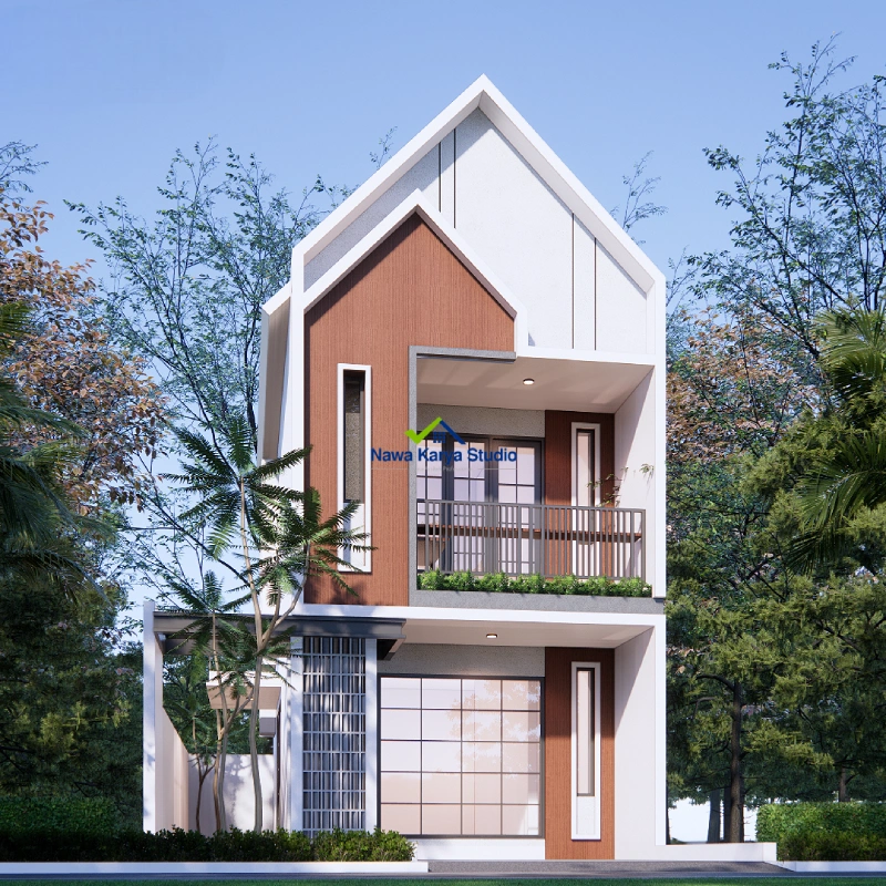 Desain lebih menitikberatkan pada bentuk geometris sederhana, atap datar atau pelana rendah, dan permukaan dinding smooth finish.Material Kombinasi