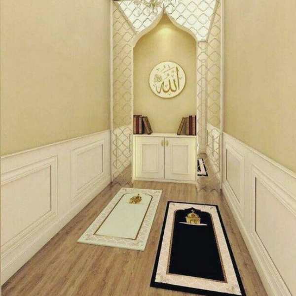 Jika rumah Anda memiliki ruang yang sempit, memanfaatkan sudut ruangan sebagai mushola adalah pilihan terbaik. Anda bisa meletakkan karpet shalat di sudut ruangan dengan tambahan elemen dekorasi sederhana, seperti rak dinding atau tanaman kecil, untuk menciptakan suasana yang lebih nyaman. - Sekat Mushola yang Fleksibel